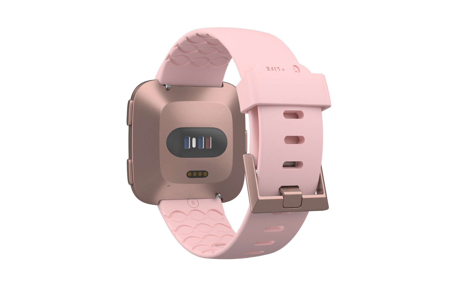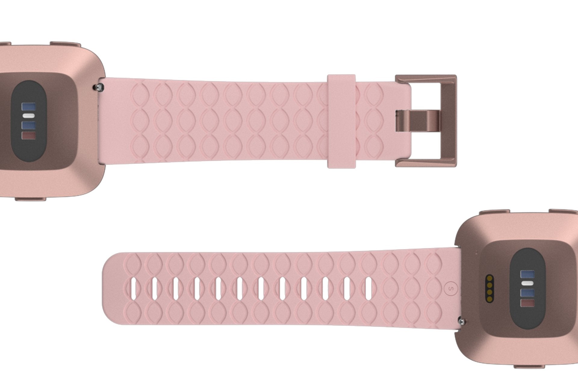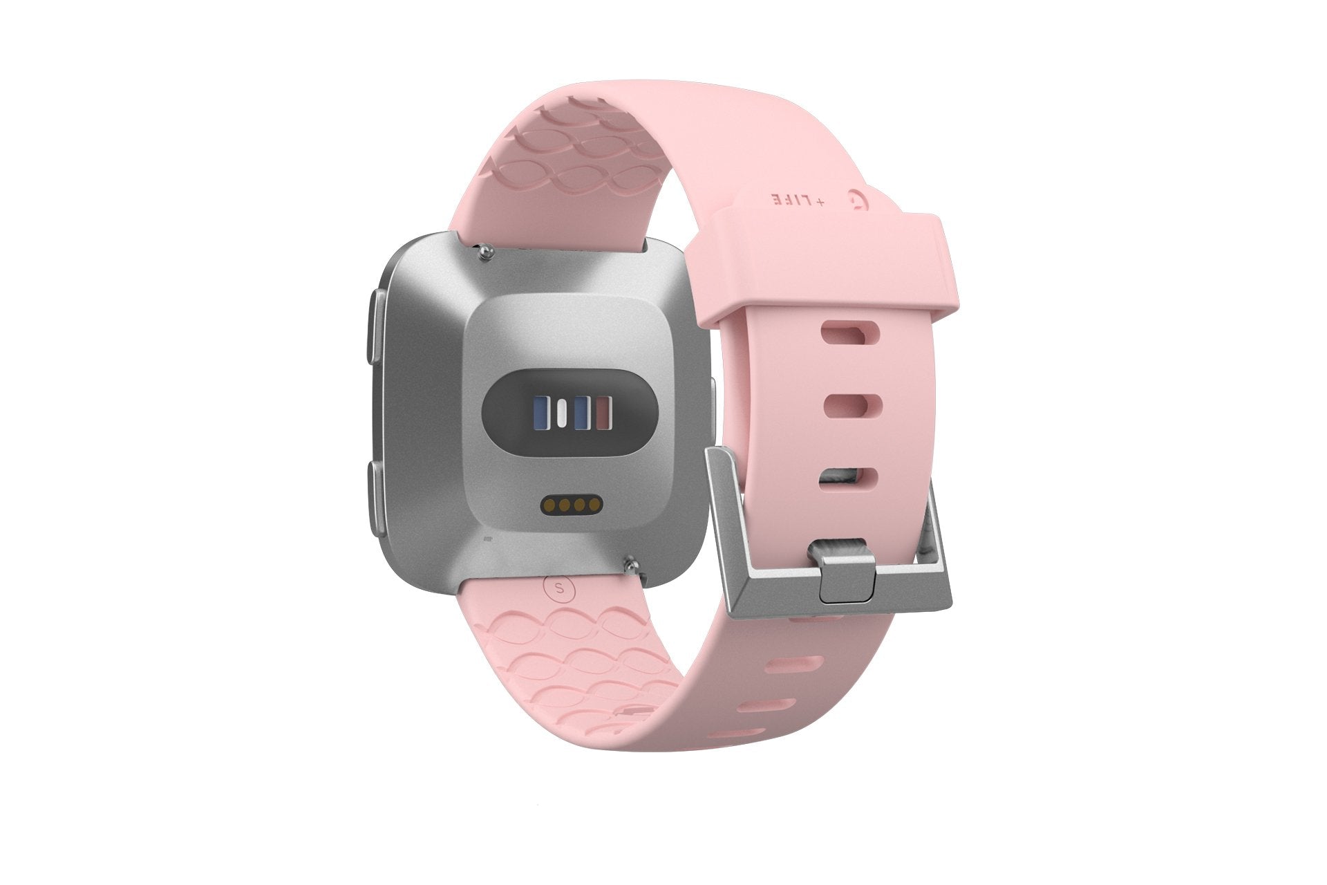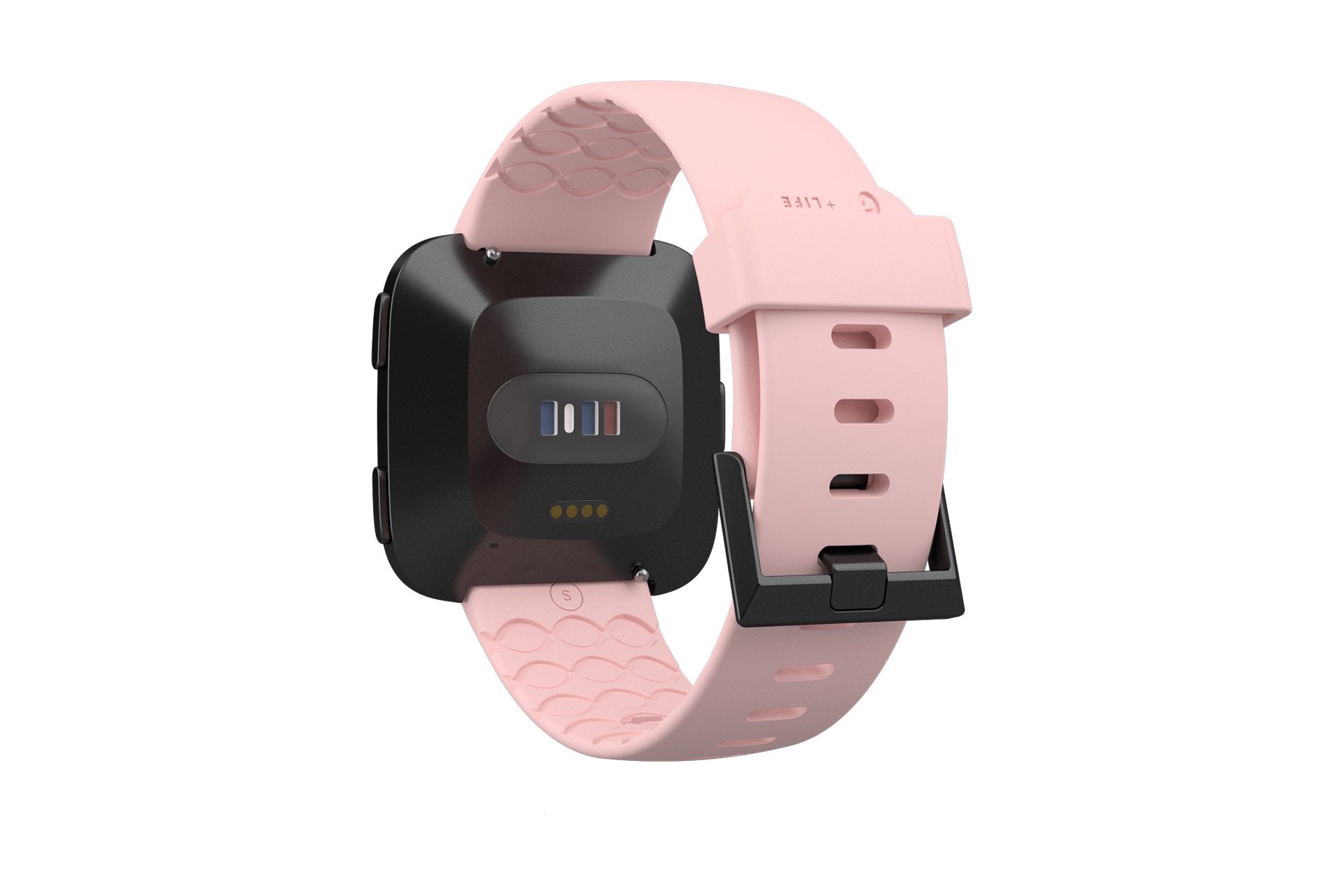 Say goodbye to sweaty wrists while wearing this Groove Watch Band for FitBit Versa & Versa Lite -- part of our New FitBit Watch Band Collection. Tons of watch bands claim to breathe... ours actually does. We took it to the next level by incorporating our cutting-edge, patented Grooves. Our exclusive designs and technology keep your wrists dry and rash free by bringing air in and keeping moisture out. The Premium Medical Grade Silicone keeps your watch band flexible and comfortable while maintaining a high level of durability. If you value performance, durability, and individual style, this is the watch band for you! Check out our colored hardware options to match your Versa model. FitBit Versa not included.