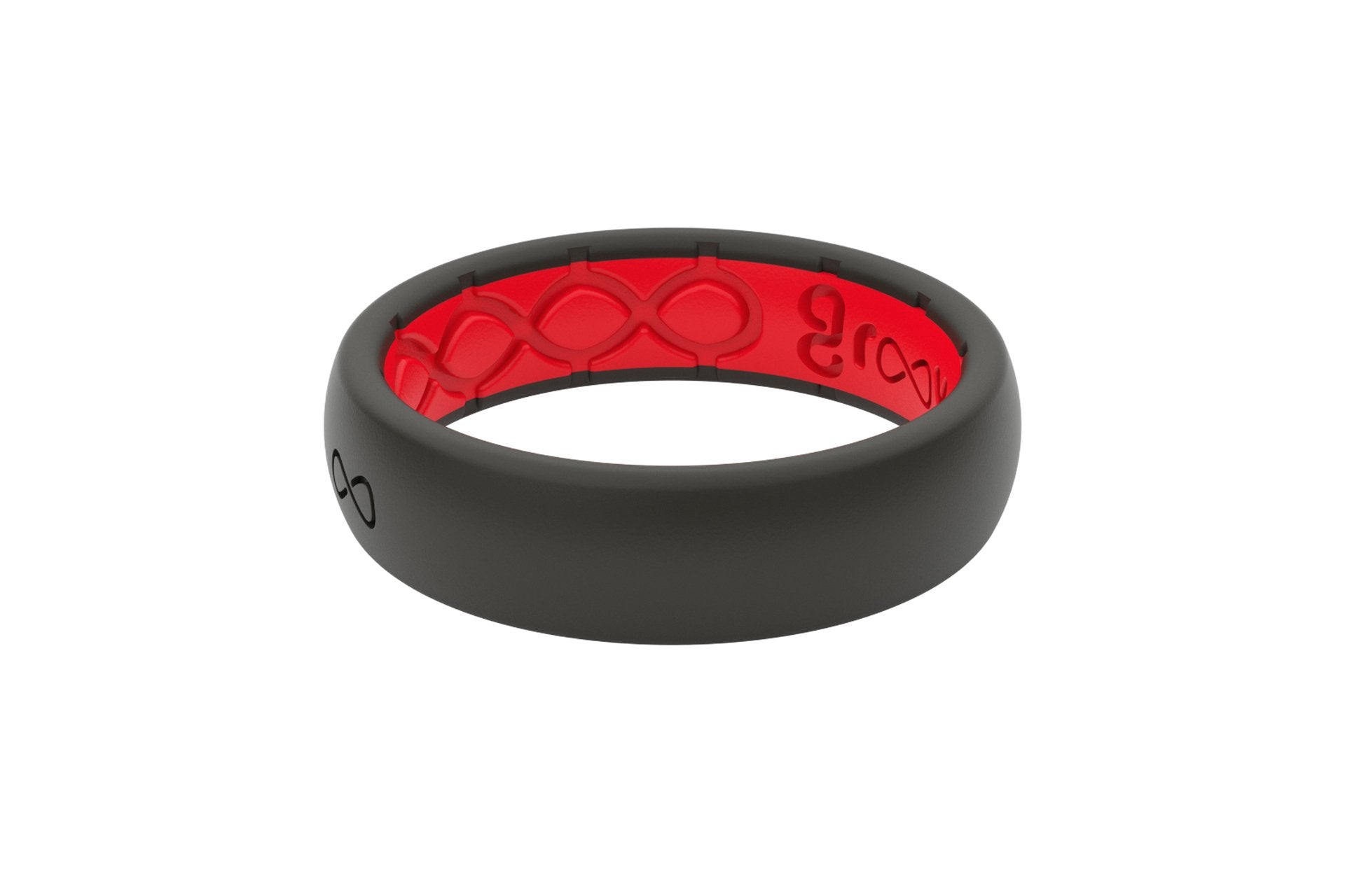 Groove's Thin Solid Colored ring is the heart and soul of Groove. We offer many unique and creative colors, allowing you to pick what suits you best. Our Midnight Black exterior paired with the Raspberry Red interior allows subtlety and style all at once. Our high-tech grooves provide an unmatched level of breathability and comfort. Engineered to keep air in and moisture out, you can't go wrong with this ring. The medical grade silicone keeps your ring flexible while maintaining a durability that other silicone rings can't compete with. This ring is the perfect choice to replace your old metal ring.