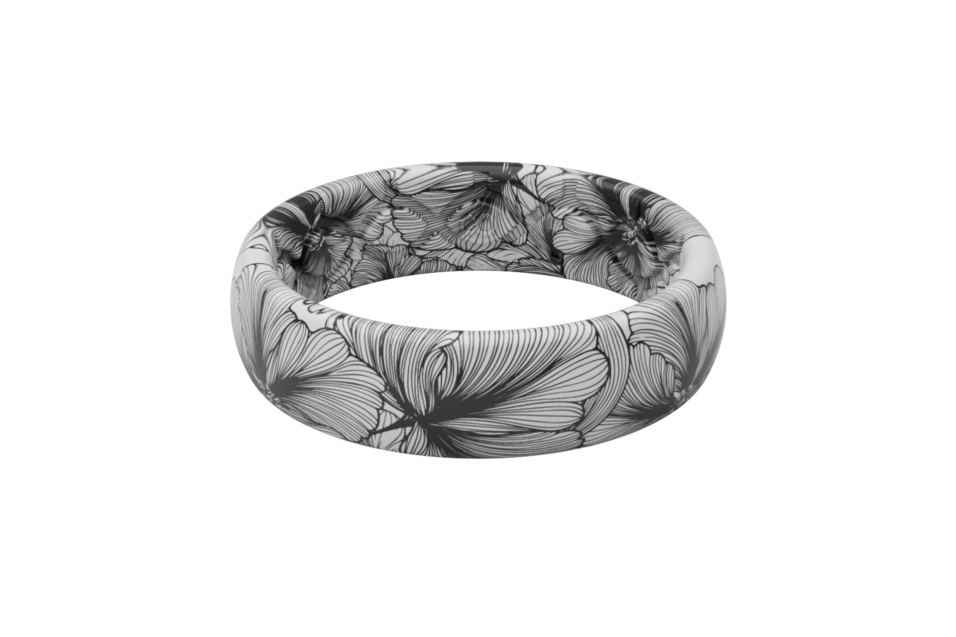 Stand out among the crowd with your Groove Aspire Ring. Our Aspire collection is our most creative collection yet, featuring bold patterns that are sure to get you and your ring noticed. The Bloom design is a constant in our ever-changing Aspire collection. Our cutting-edge Groove technology is designed to allow breathability and comfort on a whole new level. Our high elastomer blend provides maximum durability while allowing flexibility that you can't find anywhere else. This ring is perfect for women of all lifestyles looking to make a statement with their wedding band.